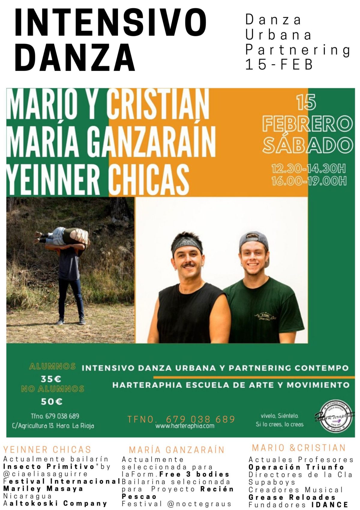 Intensivo de danza urbana y partnering contemporáneo en Harteraphia Mario y Cristian, Maria Ganzaraín, Yeiner Chicas