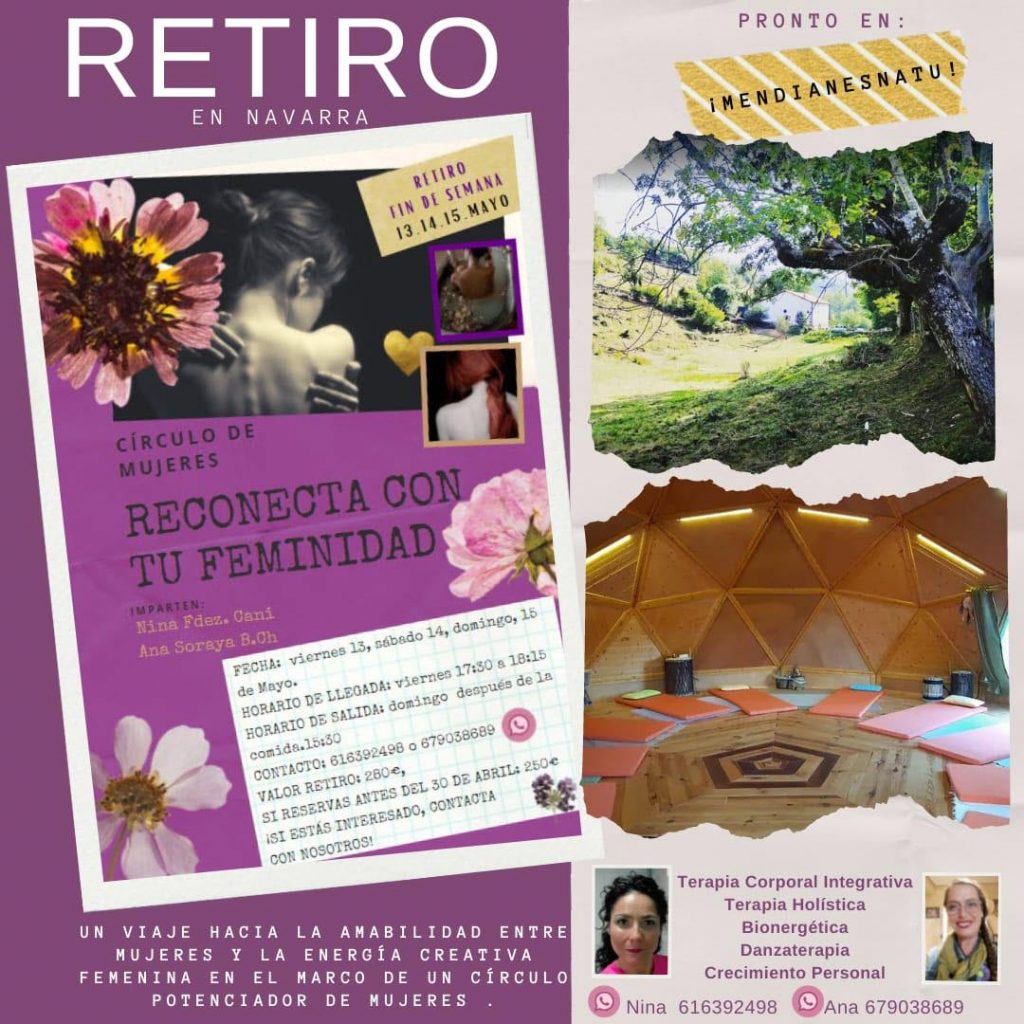 RECONECTA CON TU FEMEINIDAD. Un viaje hacia la amabilidad entre mujeres y la energia creativa feminina. 13, 14, 15 Mayo. Valor del Retiro: 280€.